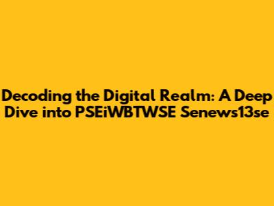 Decoding The Digital Realm: A Deep Dive Into PSEiWBTWSE Senews13se