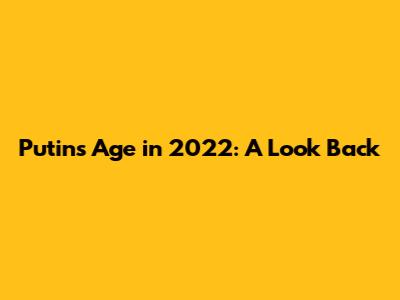 Putin's Age In 2022: A Look Back